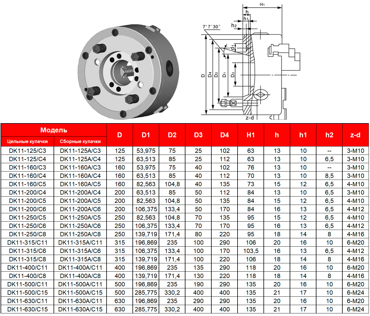 Трехкулачковые токарные патроны Fuerda серии DK11/С посадка DIN 55027