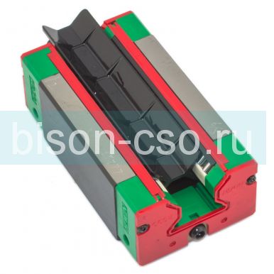 Подвижная часть (каретка) системы направляющих, обязательно используется вместе с рельсом соответствующей серии одного производителя. Включает в себя металлический корпус с монтажными отверстиями, торцы закрыты пластиковыми крышками зеленого цвета, стандартные торцевые уплотнительные манжеты красного цвета.