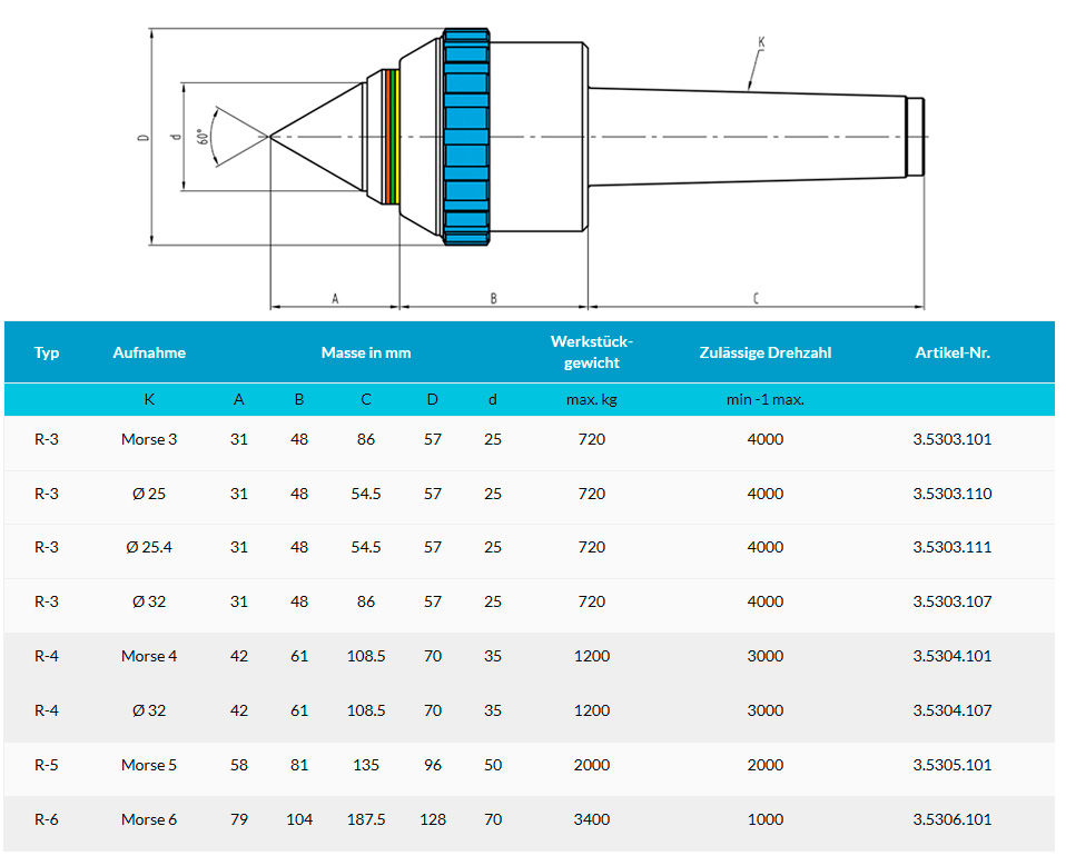 Вращающийся центр тип R-5 Art. 3.5305.101 КМ 5 с индикатором осевого усилия предназначен для точной и стабильной токарной обработки. Обеспечивает контроль и настройку усилия зажима, автоматически компенсирует тепловое удлинение заготовки и повышает безопасность и повторяемость обработки.