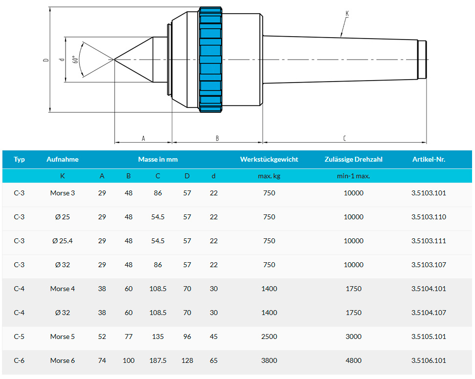 Центр вращающийся тип C для высокоскоростной и прецизионной обработки на токарных станках, включая станки с ЧПУ. Корпус из закалённой стали, вершина из высококачественной стали со сквозной закалкой. Подшипник обеспечивает высокую жёсткость и точность биения до 0,005 мм и менее. Рассчитана на работу при скоростях до 10 000 об/мин, не требует обслуживания до 2000 часов.
