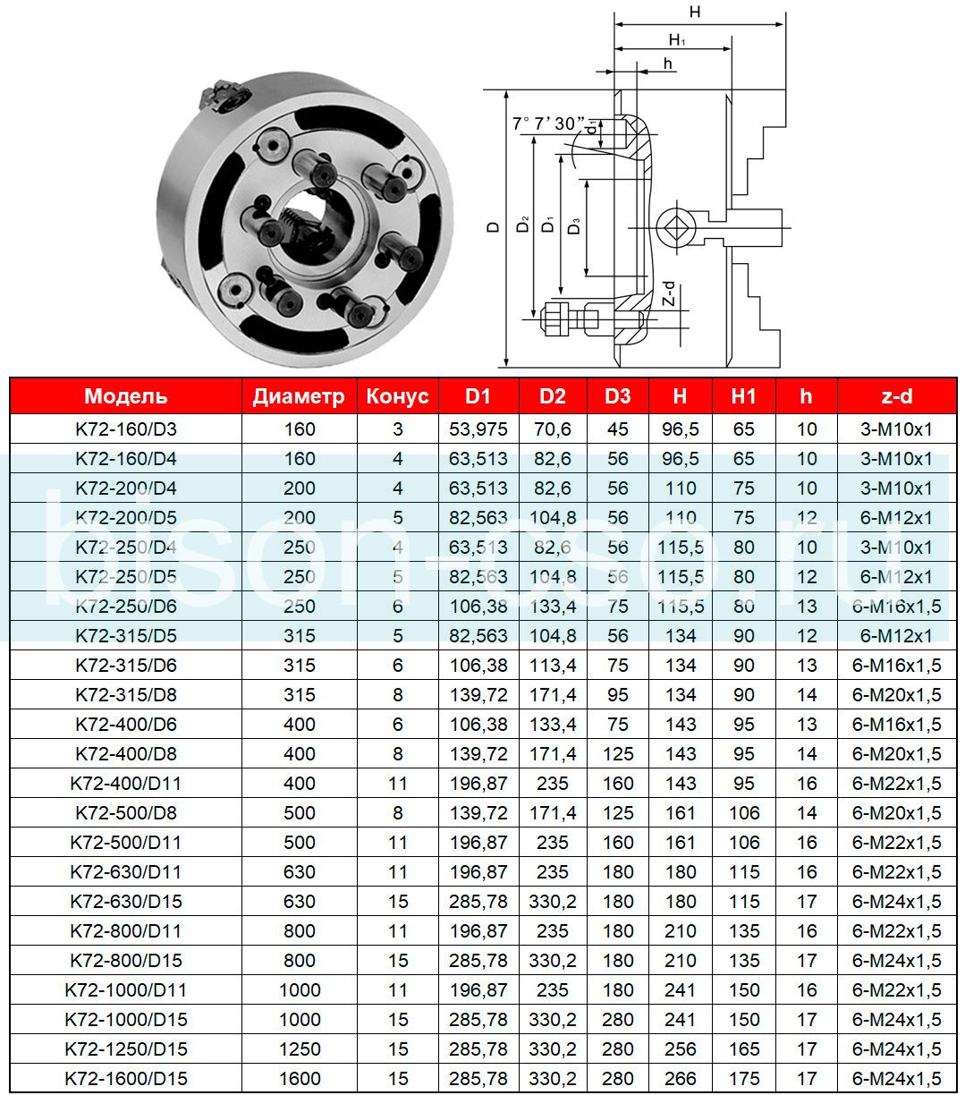 - 4-х кулачковый токарный патрон Fuerda серии K-72/C