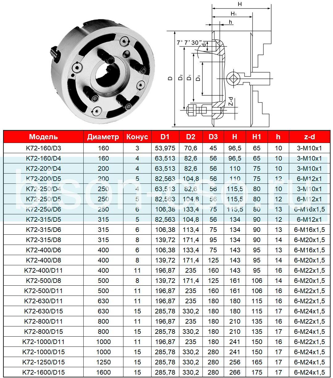 - 4-х кулачковый токарный патрон Fuerda серии K-72/C
