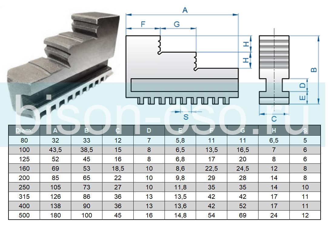 Кулачки для токарных патронов Bison-Bial Польша (Шестерни, Диски, Втулки, рейки, накладки)