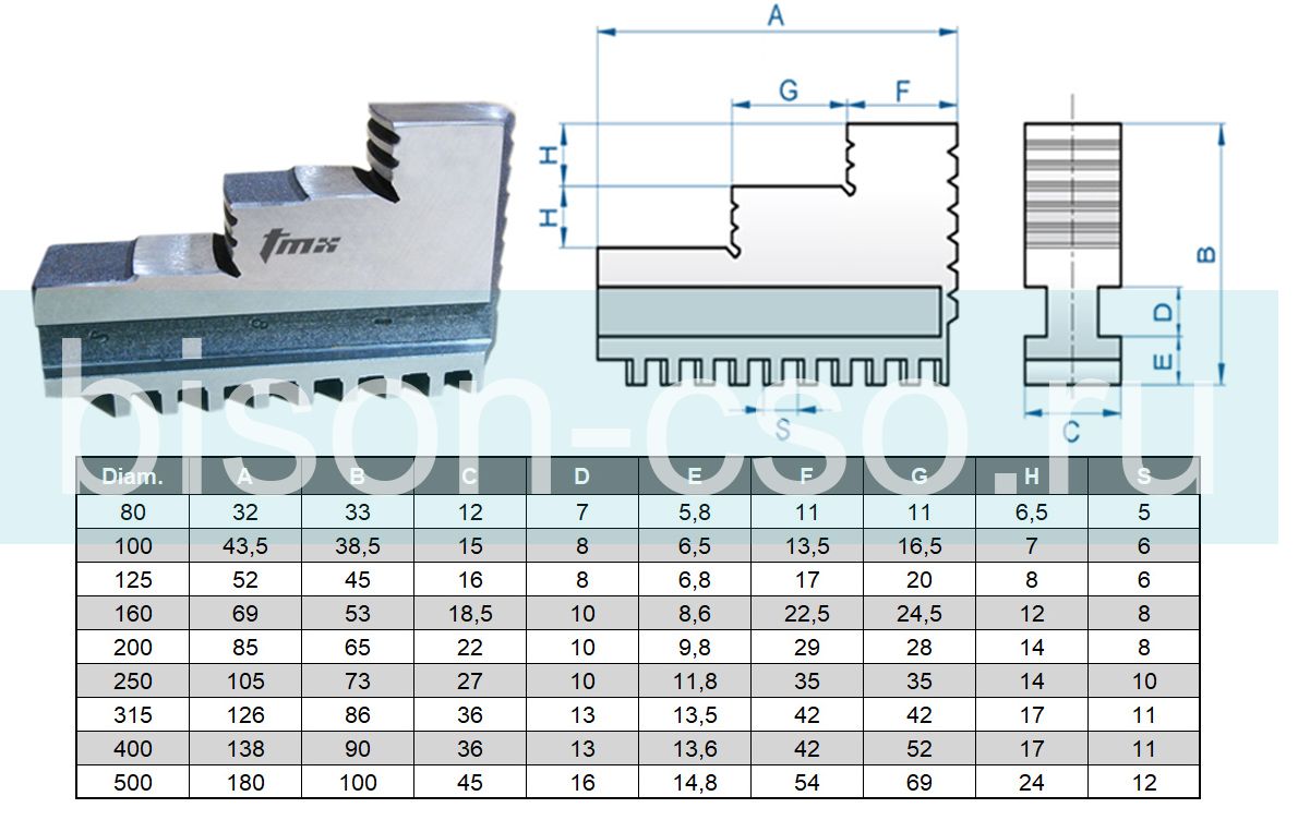 Кулачки для токарных патронов Bison-Bial Польша (Шестерни, Диски, Втулки, рейки, накладки)