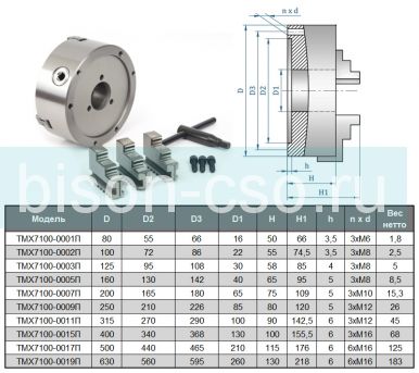 - Патроны токарные 4315 Bison-Bial DIN55026 Чугунный корпус, сборные кулачки