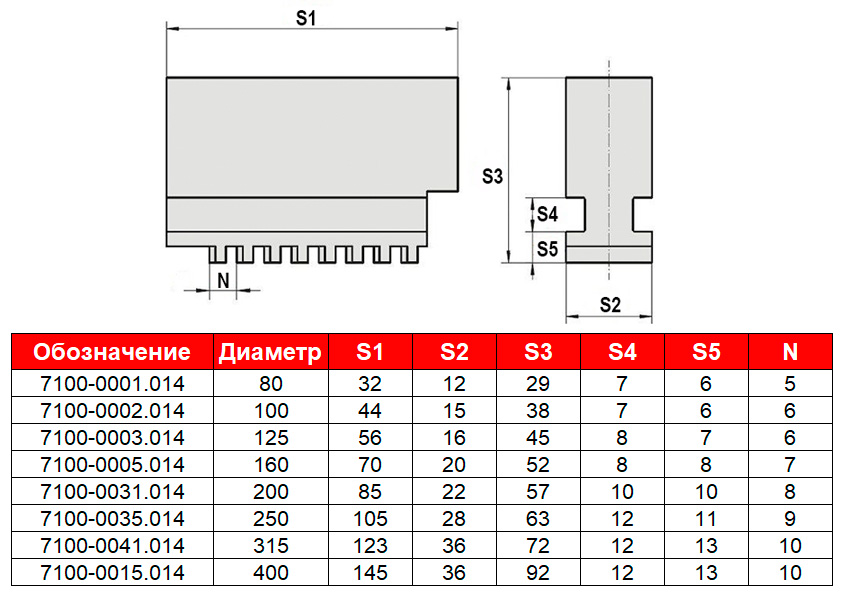 - Прямые кулачки для токарных патронов серии 7100 FUERDA