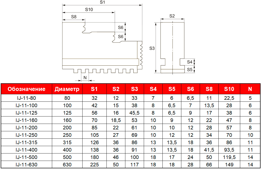 Кулачки обратные IJ-11-100 к токарным патронам 100 мм