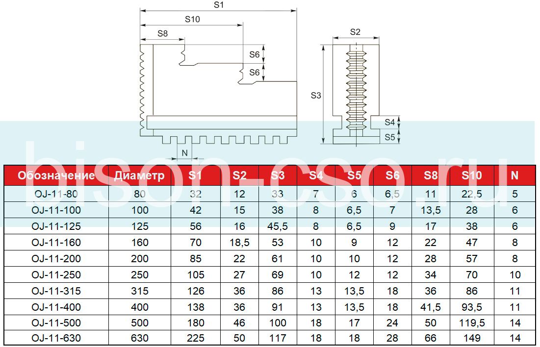 - Патроны токарные 4314 Bison-Bial DIN55026 Чугунный корпус, цельные кулачки