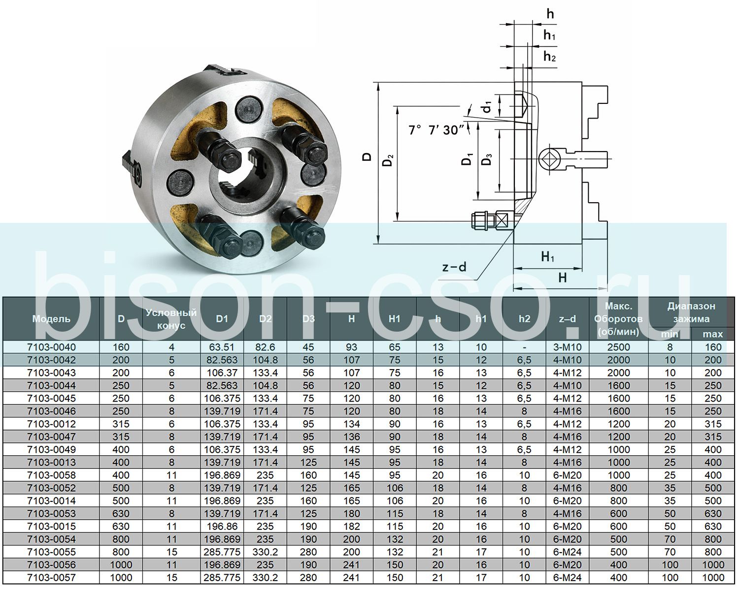 - Патроны токарные 4314 Bison-Bial DIN55026 Чугунный корпус, цельные кулачки