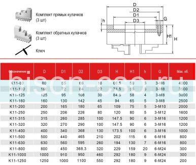 - Трехкулачковые токарные патроны Fuerda серии K11 посадка ТИП 1