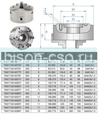 Токарный патрон TMX7100-0010П 3-х кулачковый самоцентрирующий со сборными кулачками в комплекте ГОСТ 2675-80