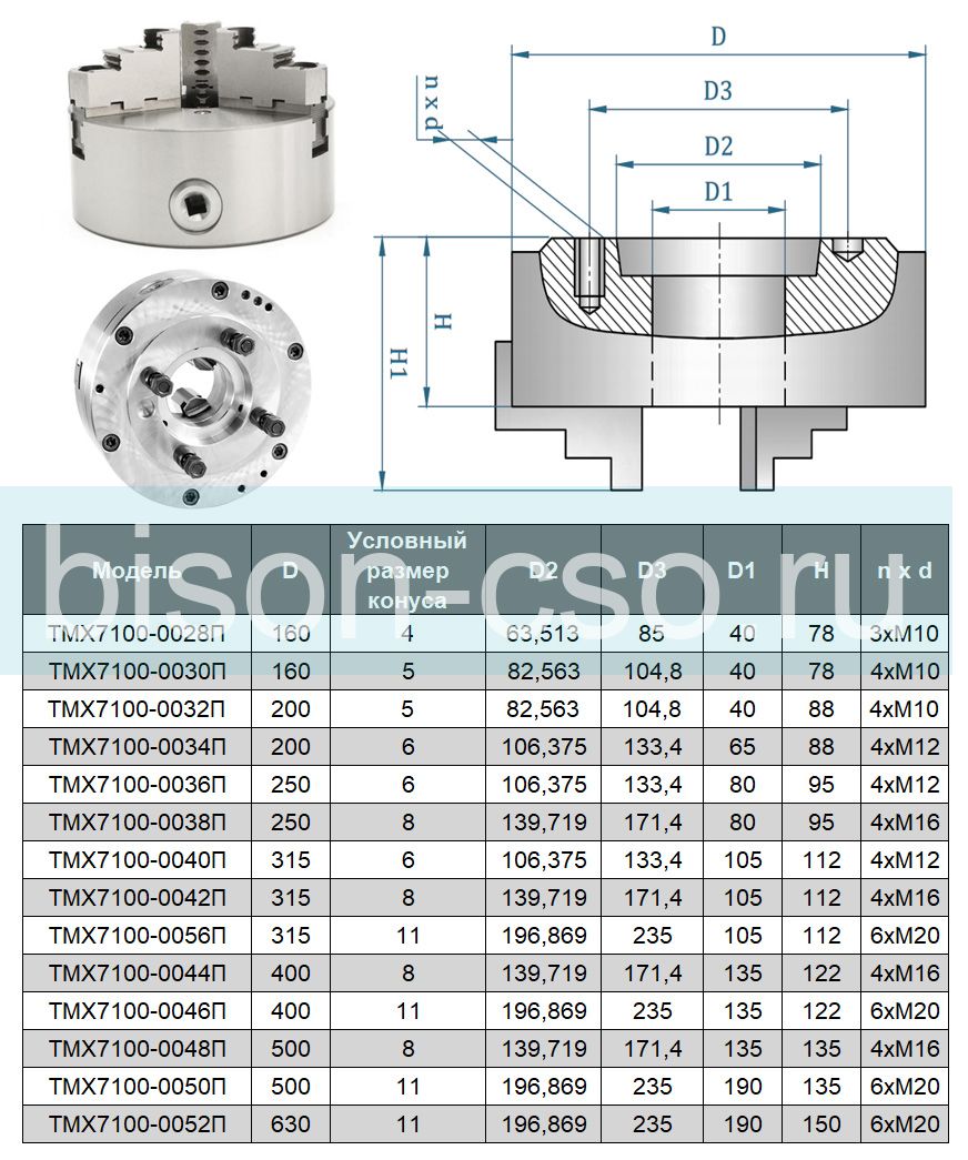 - Патроны токарные 4314 Bison-Bial DIN55026 Чугунный корпус, цельные кулачки