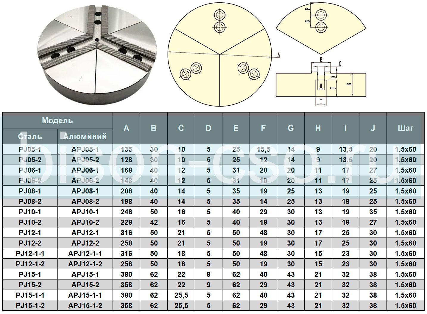 PJ TMX — секторные мягкие кулачки для самоцентрирующих патронов. Мягкая сталь позволяет растачивать профиль по месту, добиваясь точной соосности, минимального биения и аккуратного контакта с поверхностью заготовки. За счёт большой площади кулачки обеспечивают равномерный зажим, снижают риск деформации тонкостенных колец, дисков и фланцев.