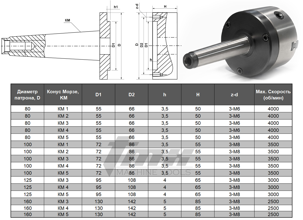 Токарный патрон 80 мм с конусом Морзе КМ 4 TMX
