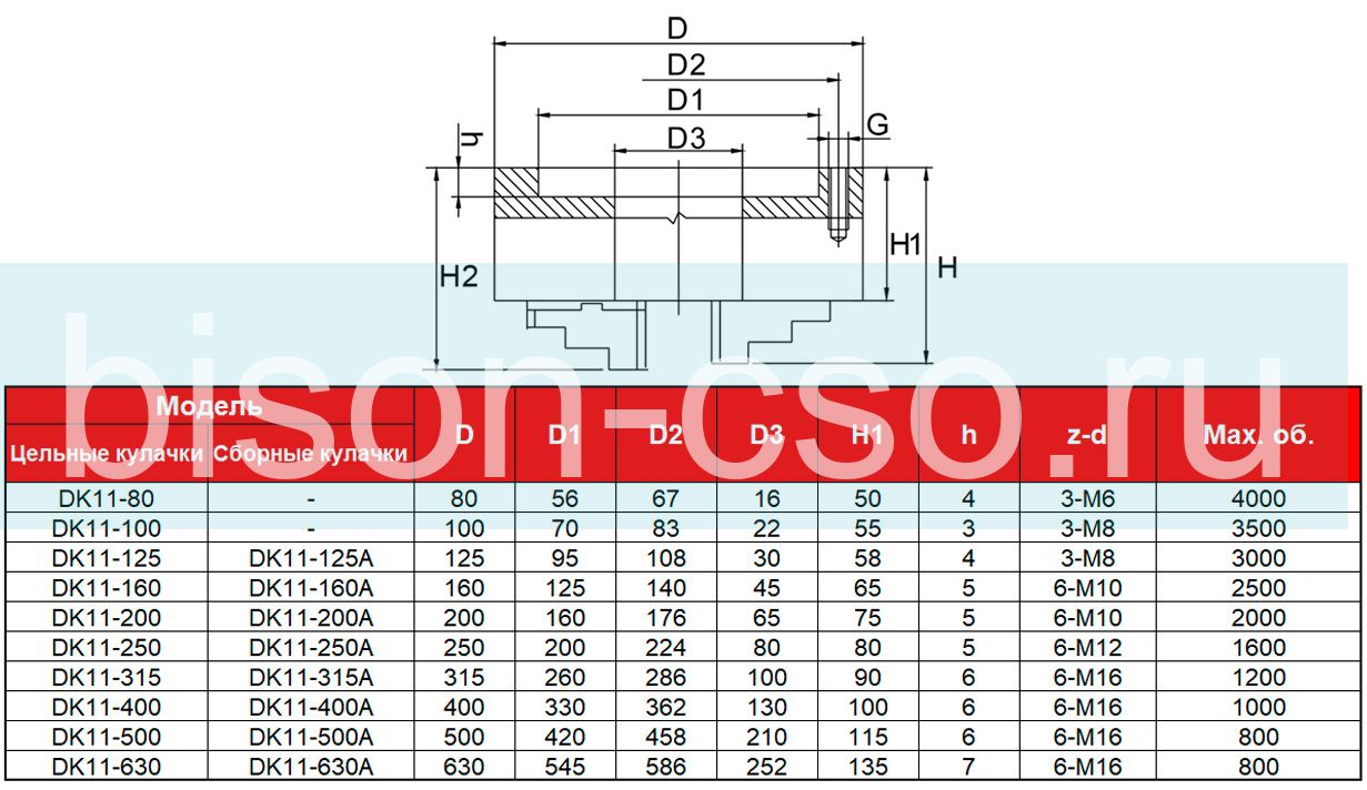 - Патроны токарные 4314 Bison-Bial DIN55026 Чугунный корпус, цельные кулачки