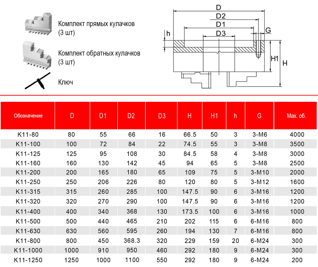 Серия K11 — это универсальные самоцентрирующие трёхкулачковые патроны для операций по стали и цветным сплавам: точение, растачивание, сверление, нарезание резьбы. Спирально-реечный механизм обеспечивает синхронный ход кулачков, повторяемое центрирование и предсказуемое биение при работе с круглыми и шестигранными заготовками. Конструкция рассчитана на длительную эксплуатацию и стабильность в повседневной работе; патрон удобен в переналадке. Монтаж выполняется через переходной фланец. Перед покупкой рекомендуется сверить посадочные размеры и схему крепления для корректной установки и соблюдения паспортных параметров.