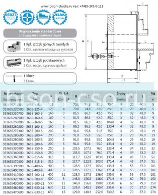 - Патроны токарные 4335 Bison-Bial DIN55027 Чугунный корпус, сборные кулачки