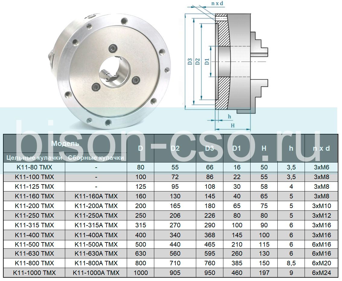 - Патроны токарные 4314 Bison-Bial DIN55026 Чугунный корпус, цельные кулачки