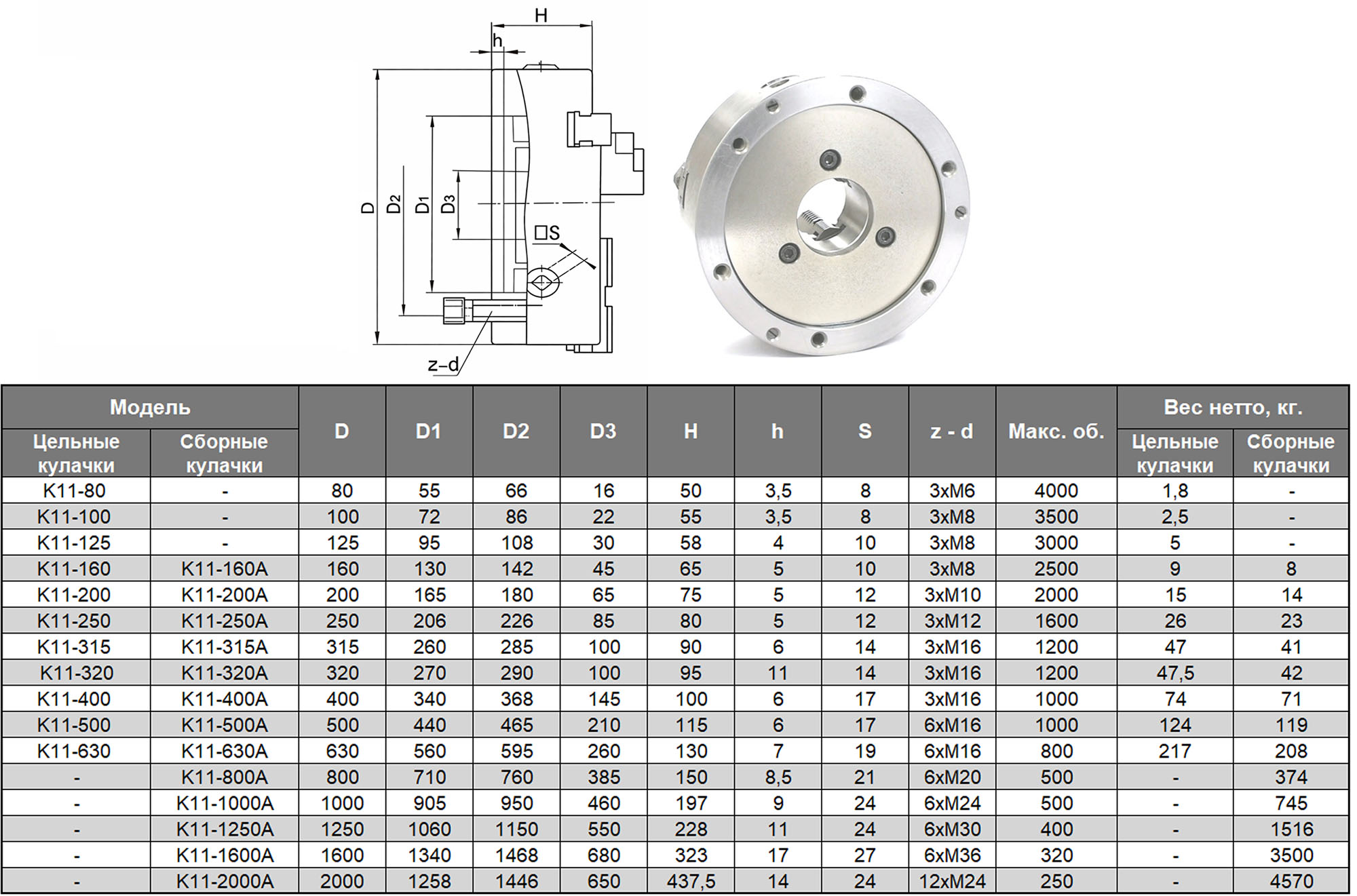 - Трехкулачковые токарные патроны Fuerda серии K11 посадка ТИП 1