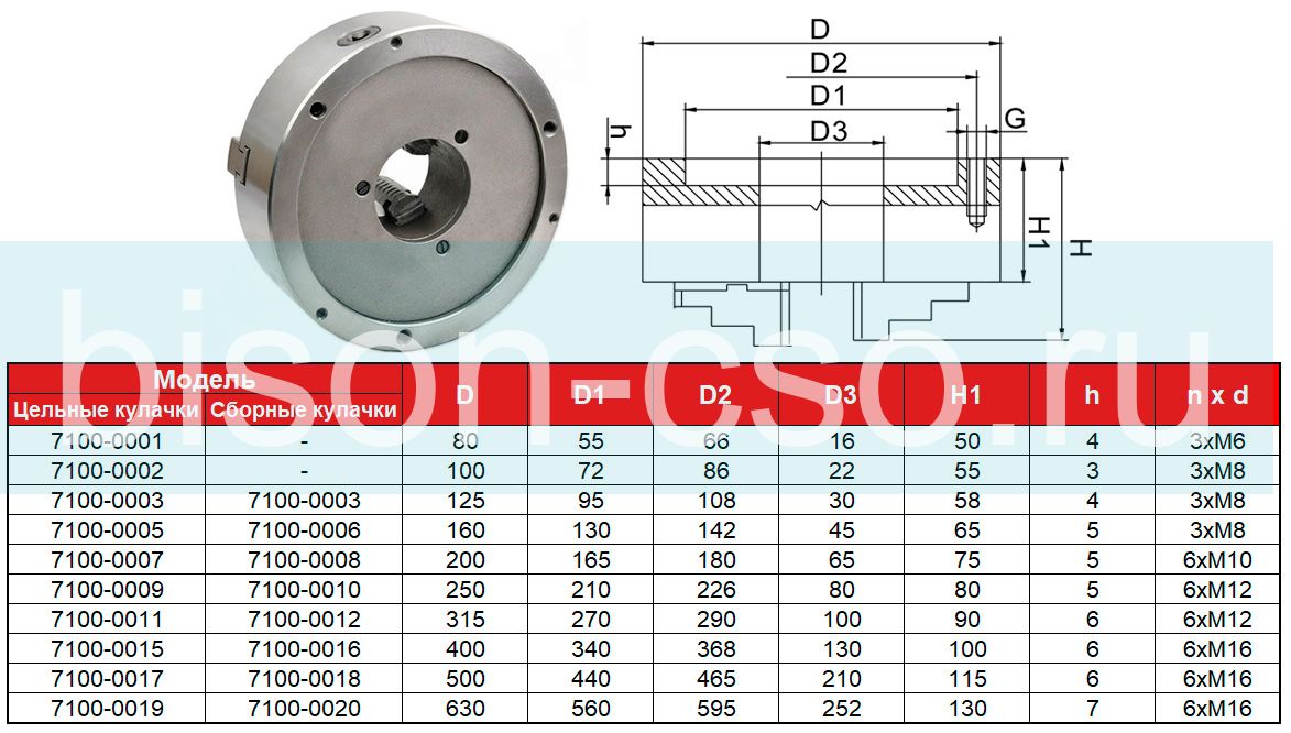 - Патроны токарные 4334 Bison-Bial DIN55027 Чугунный корпус, цельные кулачки