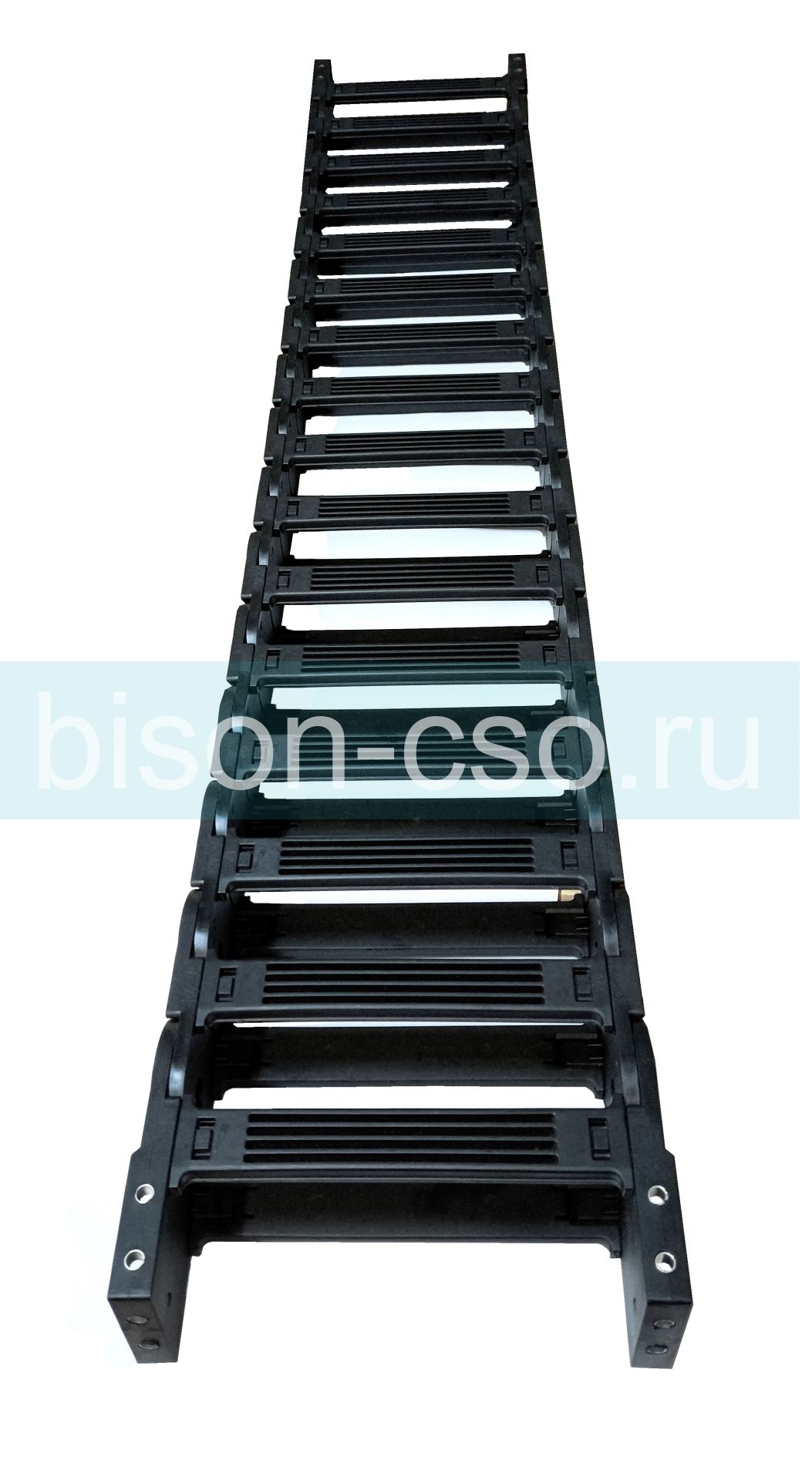 Канал 45x175-R125 открытого типа, звенья открываются внутрь и наружу от изгиба. Энергоцепи можно соединять друг с другом, а также снимать излишние звенья цепи, тем самым создавая необходимую для работы оборудования длину кабельного трака. Каждый кабель-канал TMX Cable Chain уже снабжён комплектом коннекторов(!), что позволяет не задумываться о необходимости их приобретения отдельно.