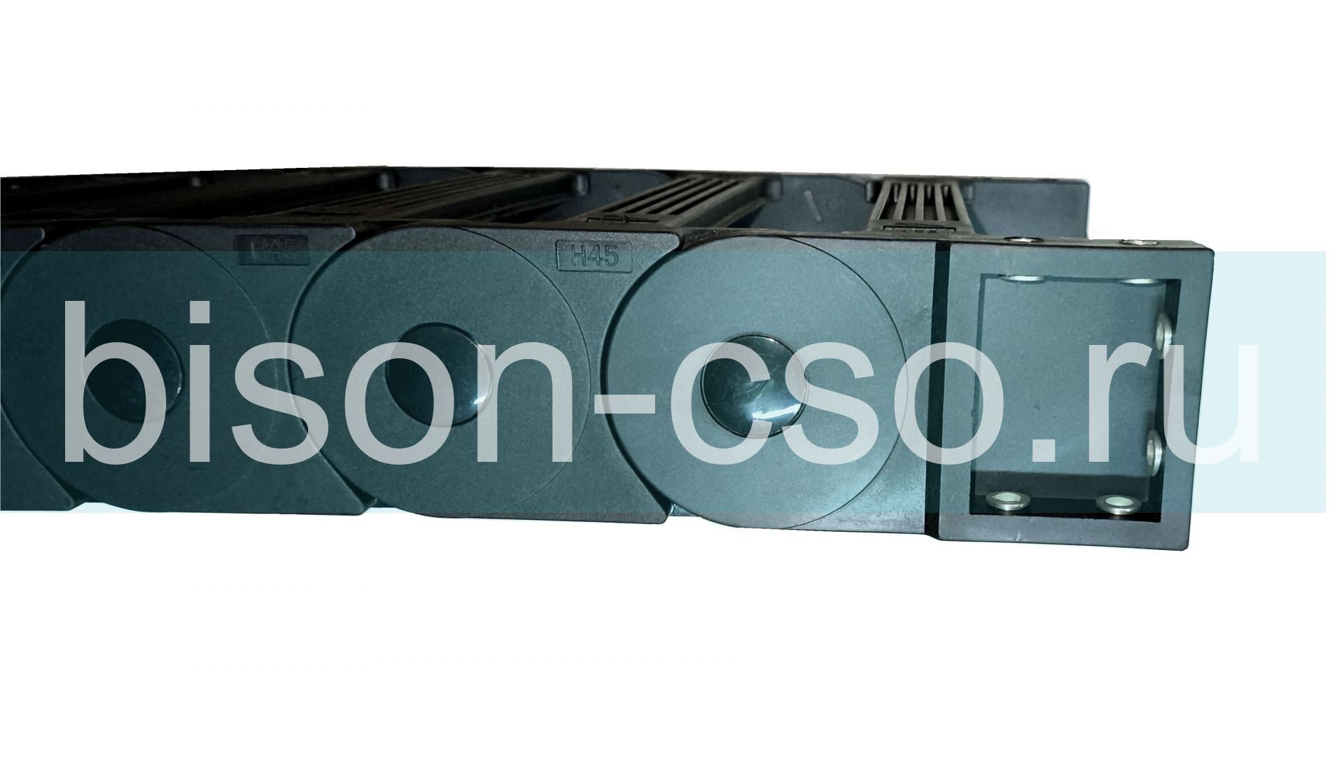 Канал 45x175-R125 открытого типа, звенья открываются внутрь и наружу от изгиба. Энергоцепи можно соединять друг с другом, а также снимать излишние звенья цепи, тем самым создавая необходимую для работы оборудования длину кабельного трака. Каждый кабель-канал TMX Cable Chain уже снабжён комплектом коннекторов(!), что позволяет не задумываться о необходимости их приобретения отдельно.