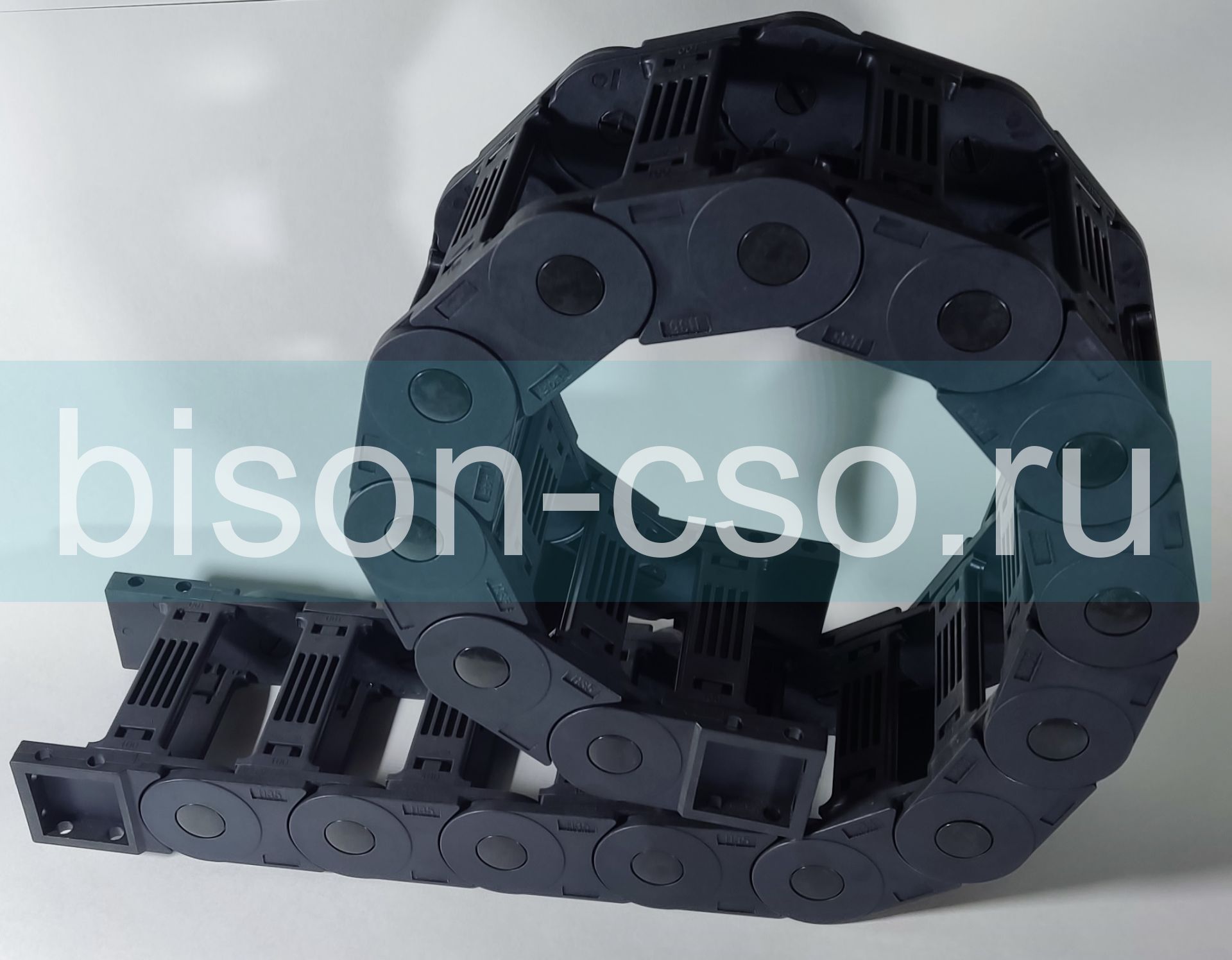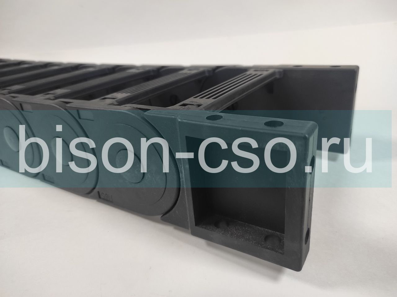 Канал 80x125-R250 открытого типа, звенья открываются внутрь и наружу от изгиба. Энергоцепи можно соединять друг с другом, а также снимать излишние звенья цепи, тем самым создавая необходимую для работы оборудования длину кабельного трака. Каждый кабель-канал TMX Cable Chain уже снабжён комплектом коннекторов(!), что позволяет не задумываться о необходимости их приобретения отдельно.