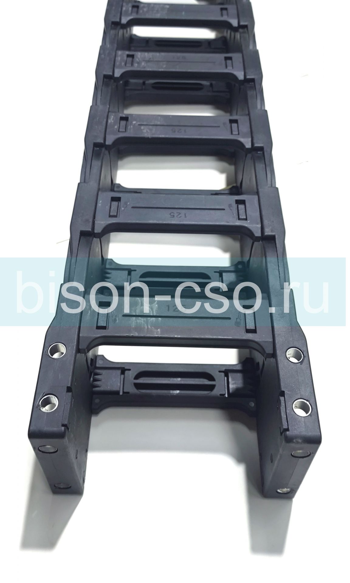 Кабель канал гибкий 80x125-R250 открытого типа, звенья открываются внутрь и наружу от изгиба. Энергоцепи можно соединять друг с другом, а также снимать излишние звенья цепи, тем самым создавая необходимую для работы оборудования длину кабельного трака. Каждый кабель-канал TMX Cable Chain уже снабжён комплектом коннекторов(!), что позволяет не задумываться о необходимости их приобретения отдельно.
